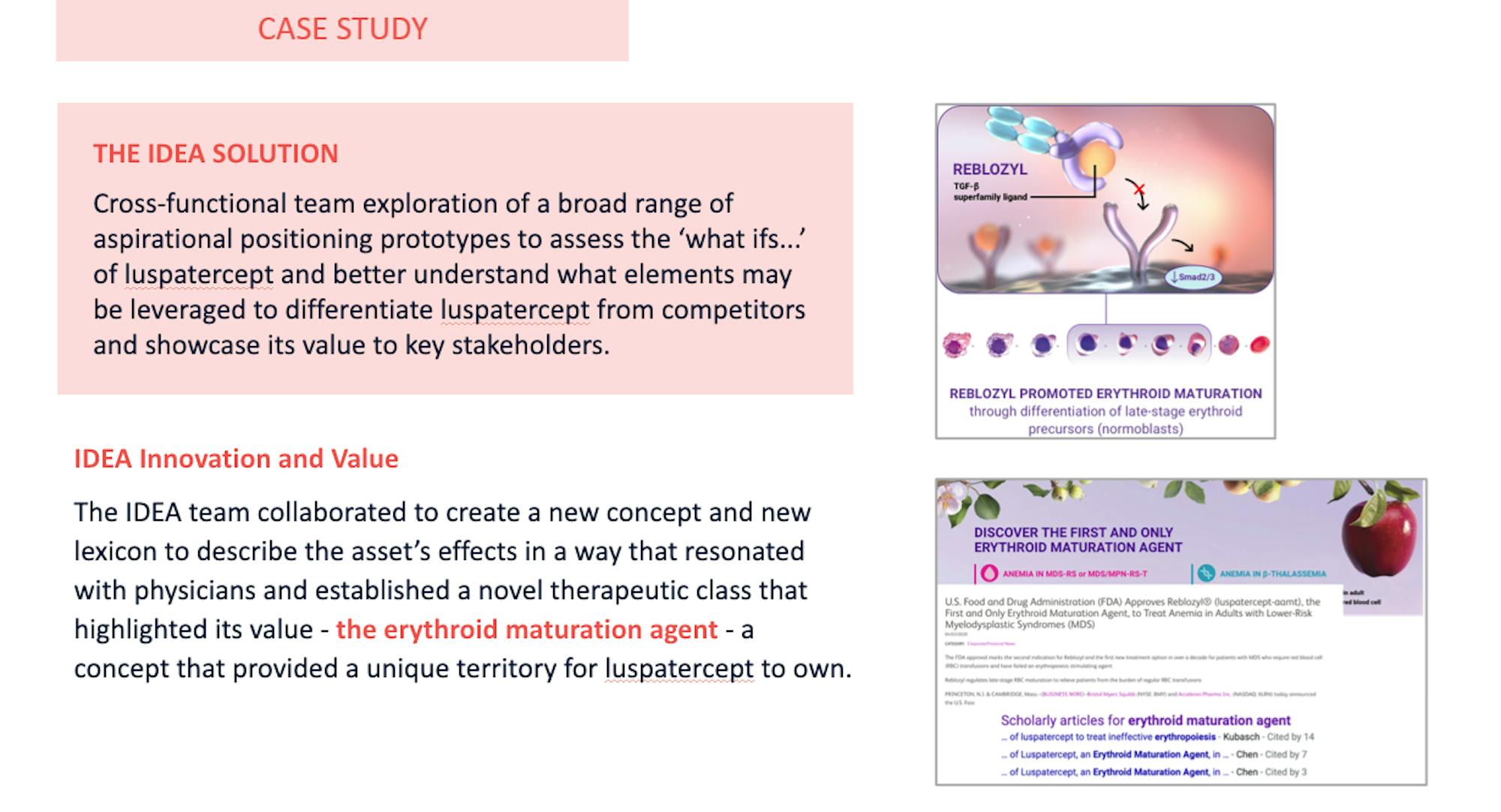 The IDEA Pharma team was asked to support the strategic positioning of Celgene and Acceleron's phase II asset (luspatercept) across hematologic indications.