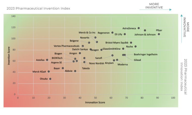 The Index ranks companies utilising a range of clinical, regulatory, and commercial metrics, ranging from the corporate level down to individual product decisions and outcomes. The Invention Index measures the potential value of a company's pipeline, and the Innovation Index measures the company's ability to convert potential value to realised value.