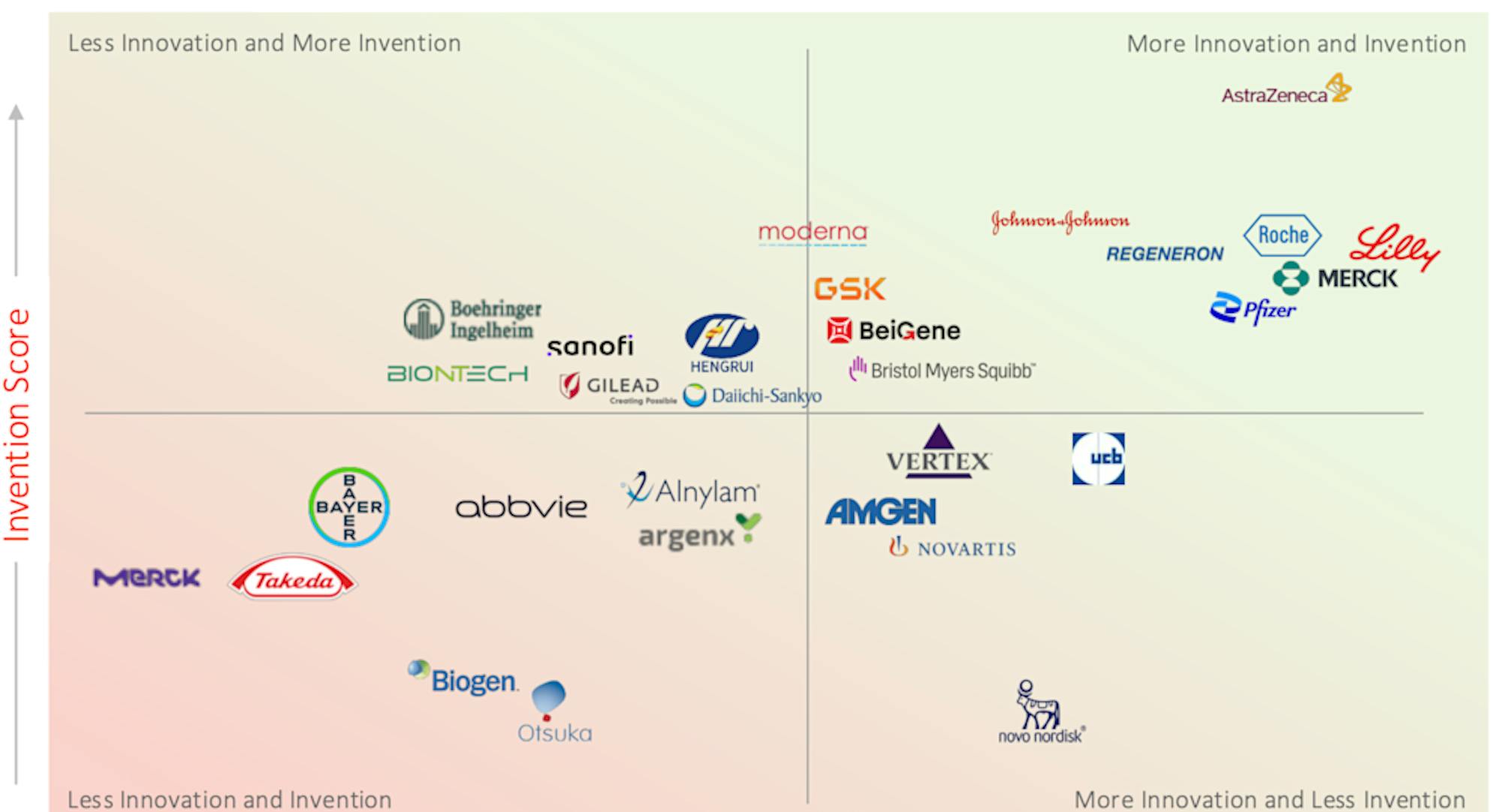 Although the headline this year is the new number one, six of the top 10 were in the top 10 for innovation in 2024, and only three new companies have entered the Invention top 10. We see continued outstanding performance from companies like Pfizer and Merck & Co.